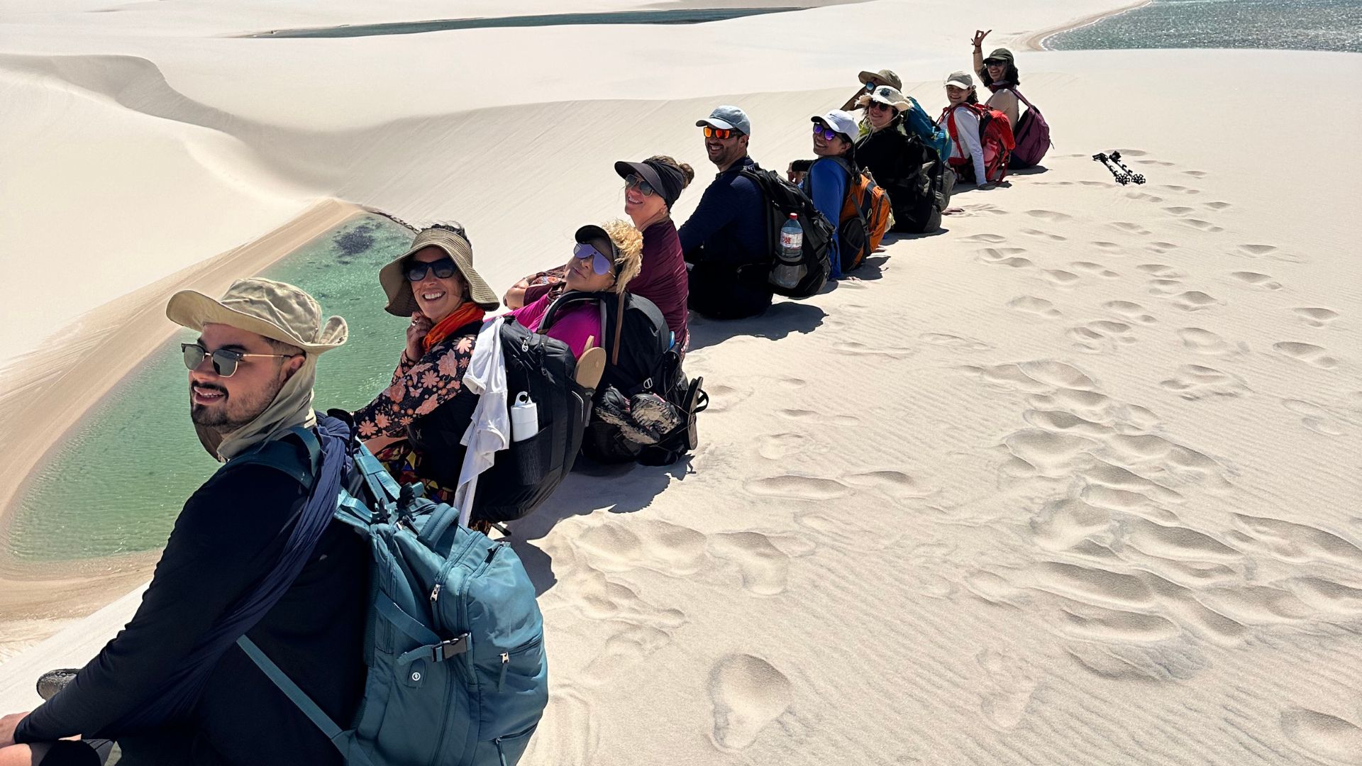 Começa a travessia! Mochilas prontas? O primeiro trajeto leva até o oásis de Baixa Grande, um cantinho cheio de coqueiros e lagoas escondidas entre as dunas.